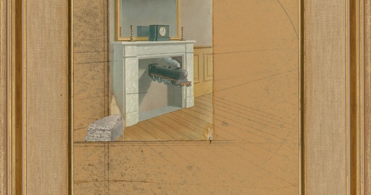 "Based upon René Magritte: "Time Transfigured"" verso, black marker. "Cornell" verso, black marker.