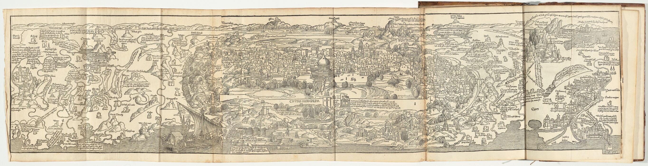 Bernhard von Breidenbach, Erhard Reuwich · 1486 · bound volume illustrated with 24 woodcuts, including 7 folding plates, in a contemporary Jena binding · Accession ID 2001.81.1