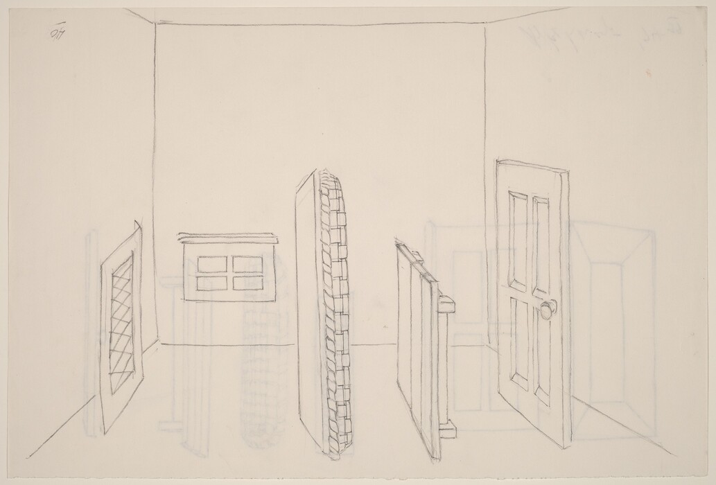 Basket, Table, Door, Window, Mirror, Rug #39 [recto]
