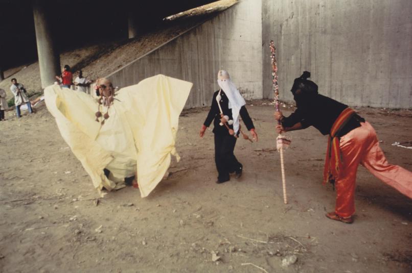 Followed by Shopping Bag Spirits and Freeway Fetishes: Reflections on Ritual Space, an investigation into the use of ritual by artists practicing across a variety of media. Here “ritual” is defined as the creation and utilization of objects, words, or tones used in a repetitive or habitual way to generate a spiritually cathartic experience. Featuring artists David Hammons, Betye Saar, Houston and Kinshasha Conwill, N'Senga Nengudi, K. Curtis Lyle, Ojenke, Kamaau Da'oud, Kenneth Severin, and Freedom in Expression. (1980, 35mm, 60 minutes)
