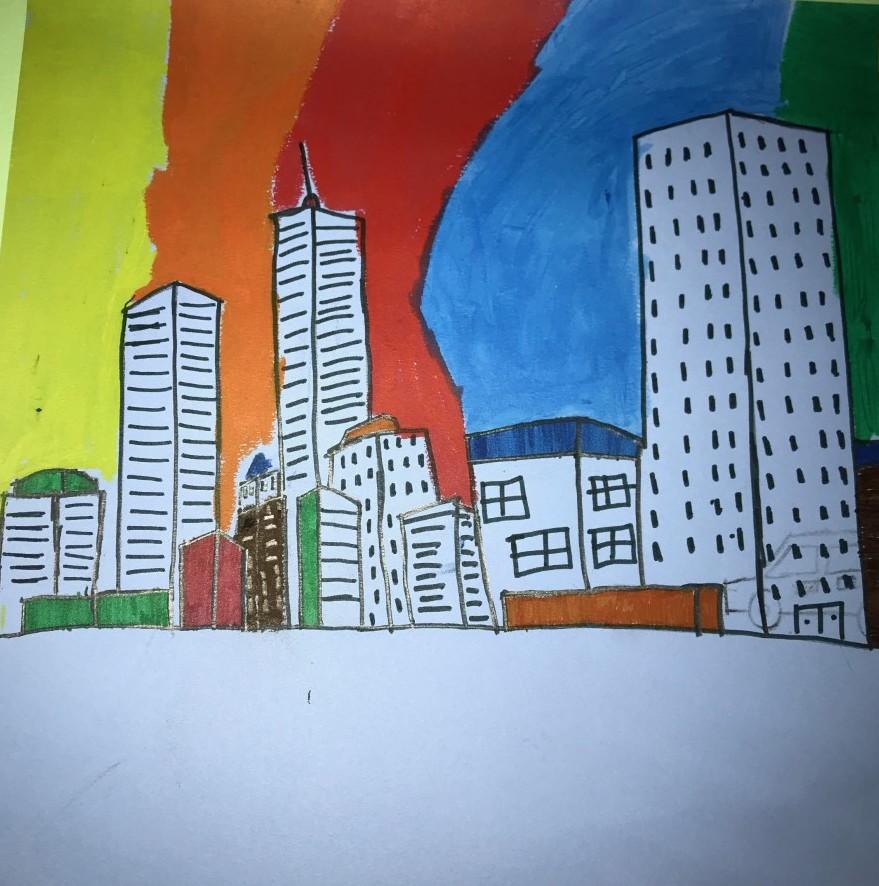 Make the background of your city scene first. Cut rectangles or other building shapes out of colored paper or cardstock, and glue them to your heavyweight paper. Add details to the buildings with oil pastels. Then, add people to your scene by drawing with pastels. Try to capture the energy of the city in your work!