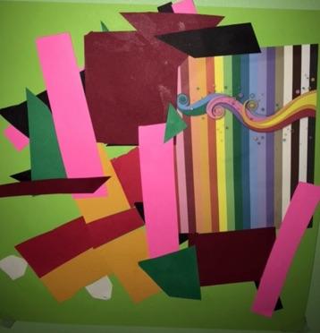Next, think of a theme or place for your artwork, such as a garden, a city, or the sea. Use scissors to cut the colored paper into different shapes likes trees, buildings, or waves.