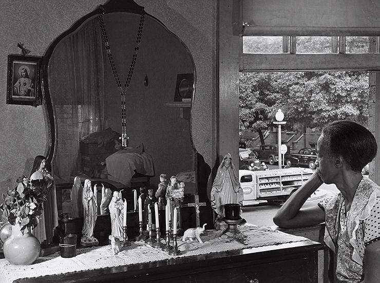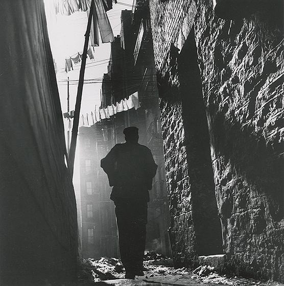 Gordon Parks and writer Ralph Ellison were friends and collaborators, simultaneously exploring through different means the daily injustices faced by black Americans. In 1948, Parks and Ellison walked the streets of Harlem together, photographing and writing about the connections between segregation and psychological health. Some of their findings were incorporated into Ellison’s 1952 novel Invisible Man, which explores themes of identity, community, stereotype, memory, and power through the voice of the narrator and his life experiences.