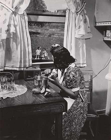 In 1937, while working as a waiter on the North Coast Limited passenger train, Parks saw magazines featuring Depression-era photographs—images like Dorothea Lange’s Migrant agricultural worker’s family, Nipomo, California that recorded the social and economic conditions of migrant farmers across the country. For Parks, images of dust bowl migrants reminded him of his own struggles and inspired him to purchase his first camera, a life-changing decision. He later recalled, “I was convinced of the power of a good picture.”