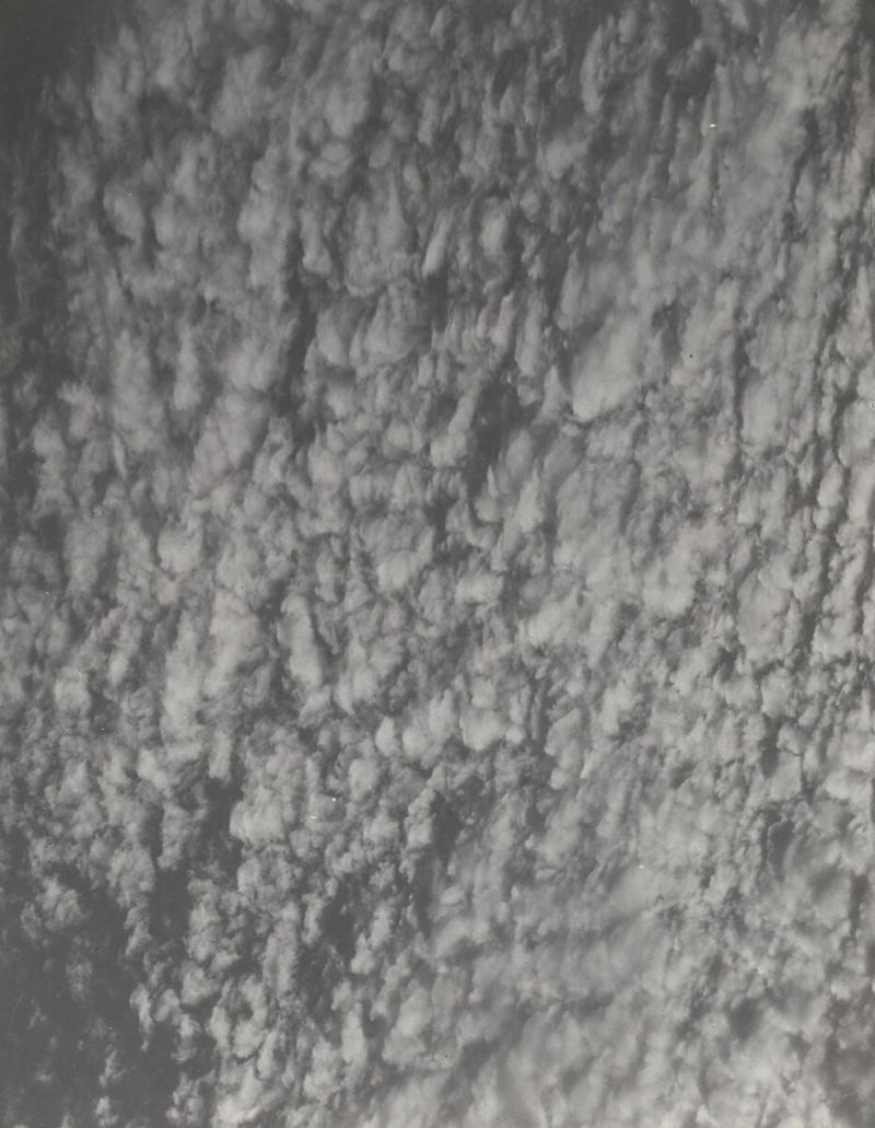 Stieglitz referenced music in the titles of his cloud photographs from 1922 (Music: A Sequence of Ten Cloud Photographs) and 1923 (Songs of the Sky), linking the abstraction inherent in music to the forms of the clouds. But starting in 1925, he began calling them Equivalents—a recognition that he saw the clouds as a vehicle to reveal his own thoughts and feelings (Key Set number 1114). As Stieglitz would later say, he saw the cloud photographs as “equivalents of my most profound life experience.”