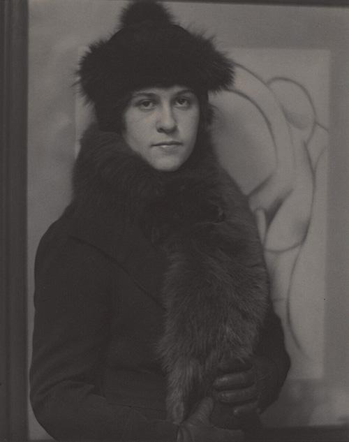 Stieglitz incorporated some of Picasso’s works from this exhibition into several portraits made at this time. Revealing his understanding of the cubists’ desire to extend objects out into the surrounding space in order to organize the pictorial plane along new coordinates, he sought to merge his subjects with Picasso’s art. By using the monochrome palette of photography he equalized the disparities of color between photography and the other arts and he also matched the scale of his subjects to the works in the background. He posed Kitty in front of Picasso’s Head of a Woman so that her hat—itself a designer’s play on the bun in a woman’s hair—was echoed in the bunlike form in the drawing, and he did much the same with his secretary, Marie Rapp, positioning her in front of the same work so that the curve of her collar merged with the lines of the drawing (figs. 10 and 11, and Key Set number 400).
