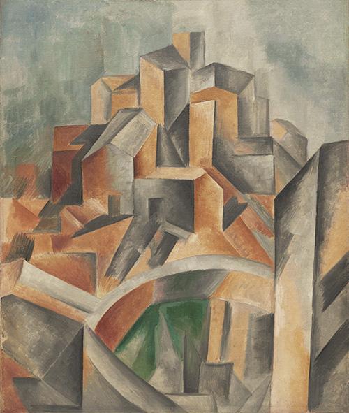 As if testing how his new understanding of art and photography would affect his continuing relationship with the city, in the spring of 1915 Stieglitz photographed out of the back windows of 291 (Key Set numbers 417–423, and fig. 14). Although other photographers had earlier studied similar subjects, Stieglitz once again used painting, not photography, and more specifically Picasso as a starting point for formulating a new approach. With their compressed space, absence of foreground, stacked and tilted planes, gridlike forms, and study of humble views, not grand vistas, his photographs from 1915 are remarkably similar both to Picasso’s Mill at Horta, which may have been shown at 291 in 1911, and to The Reservoir, Horta de Ebro, which was reproduced in Camera Work in 1912 (fig. 15). Far less iconic and dramatic than his 1910 views of the city, Stieglitz’s 1915 photographs record the patterning of lights in office buildings at night or snow on adjacent roof tops and indicate that he, like Picasso, was fascinated with revealing the underlying architectonic structure of the city. Although Picasso twisted the geometric structures of the houses far more than Stieglitz was able to do and used contradictory shadows, both artists minimized detail and purposefully obfuscated passages so that it is difficult to determine what is roof or wall, substance or void.