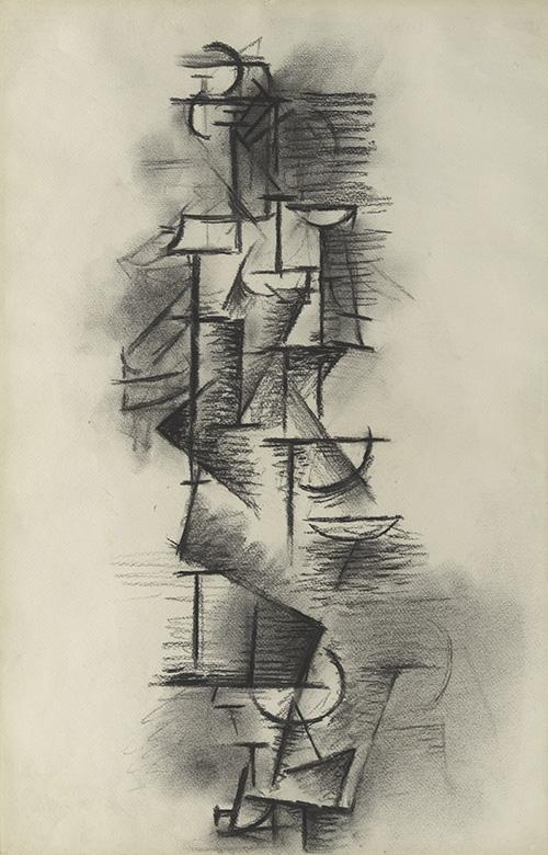 This non-photographic, or what Stieglitz would later call anti-photographic art, based on ideas, not sight, found its most radical expression in a 1911 exhibition of Picasso’s artistic evolution from 1906 through 1910. While some landscapes, such as those made in Horta in 1909, may have been shown, most works displayed were figurative studies. Reviewers were hostile, but Stieglitz recognized that the show was “possibly the most interesting one yet held” at 291 and instead of regarding Picasso’s work as the “gibberings of a lunatic,” as the critics did, he found it “as perfect as a Bach fugue.” When he stood before Picasso’s drawing Standing Female Nude, which he bought from the show, he “gained from it a genuine stimulus”; for him it was “an intellectual cocktail.”