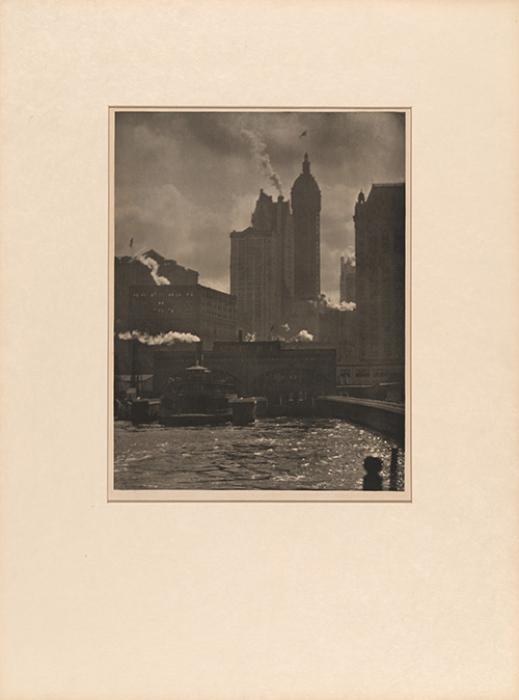 Alfred Stieglitz printed large editions of photogravures of his photographs from the mid-1890s to the mid-1910s, most of which he included in his periodicals Camera Notes, Camera Work, and 291, as well as his 1897 portfolio Picturesque Bits of New York and Other Studies. In the early 1910s, he also made larger photogravures of his photographs for exhibition and inclusion in an unrealized portfolio of pictures of New York City.