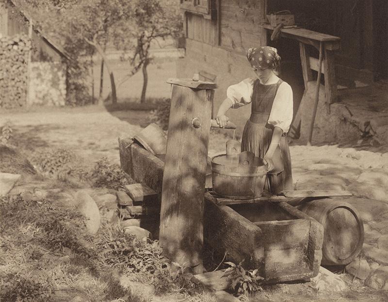 Willis’s process requires chemical development to complete the formation of a black image; raising the temperature of the developer could produce a warm black image, but a mercury additive was required to achieve a true sepia tone. Pizzighelli’s process, also known as the “direct platinum” or “water-developed” process, requires no chemical development. Only the presence of water, as steam or moisture in the sensitized paper, is required to form the image. In his 1891 essay “Tints of Prints Made on Direct Printing Platinotype Paper,” Stieglitz noted that the tone of the final print could be controlled by adjusting the moisture content of the sensitized paper prior to exposure. If the paper was moistened prior to exposure, a black image would result; if the paper was dried prior to exposure, a sepia image would result.