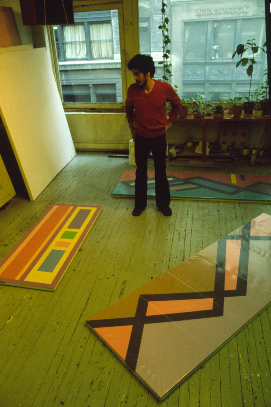 Rodríguez ​created​ his first geometric works in the early 1970s. He ​​drew on graph paper beforehand for precision. Describing his laser focus on hard-edged abstraction, Rodríguez often quipped, “You have to be sober.”