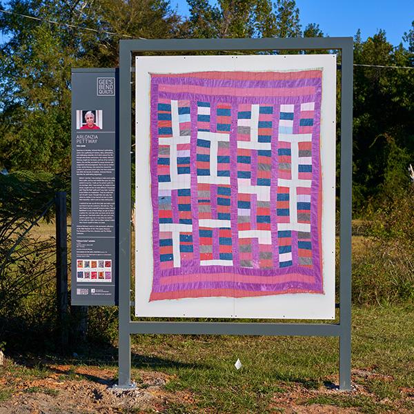 A 14-mile trail of wooden billboards reveals the legacy of the town and its quilting matriarchs. A red-and-black checkerboard inside an orange-and-gold medallion honors Patti Ann Williams. Multicolored strips imitating Arlonzia Pettway’s abstract designs look remarkably like Ghanaian kente cloth. And the minimalist geometric patterns of sky blue, white, and indigo pay tribute to Loretta Pettway Bennett, who can probably be found at the community center just off the main road.
